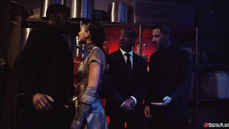 Страстная сучка с маленькими сиськами решила, что не стоит со всеми поклонниками встречаться в порядке очереди, а лучше всех пригласить к себе и устроить групповушку. Они поддержали ее идею, и вот вместе устроили отличный межрасовый групповой секс, чтобы сучка по полной программе всеми членами насладиться могла. Девица делала минет мужикам, возбуждая их до самого предела, а потом уже и трахаться начала. Во время групповушки ей ужасно двойного проникновения захотелось, и ей не могли отказать.