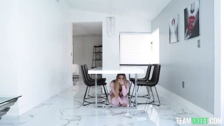 Как только у нее появился сводный брат, то блондиночка начала мечтать о том, чтобы с ним максимально сблизится. Она ничего не могла с собой поделать и постоянно за ним подглядывала. А когда она однажды случайно в душе подсмотрела и увидела его член, то вообще потеряла покой. Конечно, парень заметил, как она на него пялится и постоянно за ним таскается. Поэтому, когда они были дома наедине, он просто угостил ее своим большим членом. Блондиночка была счастлива сделать сводному брату крутой минет.